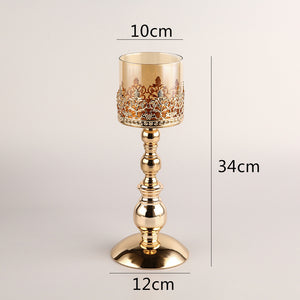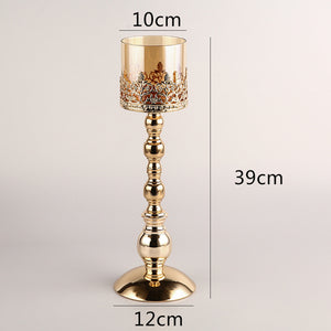 Product information : Utensil Type: Candlestick Material: iron + glass Craft : Semi-manual and semi-mechanical Size: S: 13*13*26cm, M: 13*13*33cm, L: 13*13*39cm Packing list: Candlestick*1